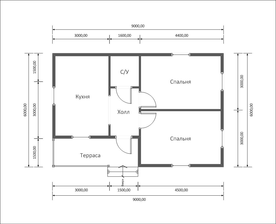 Каркасный дом в полтора этажа 6х8 м с террасой