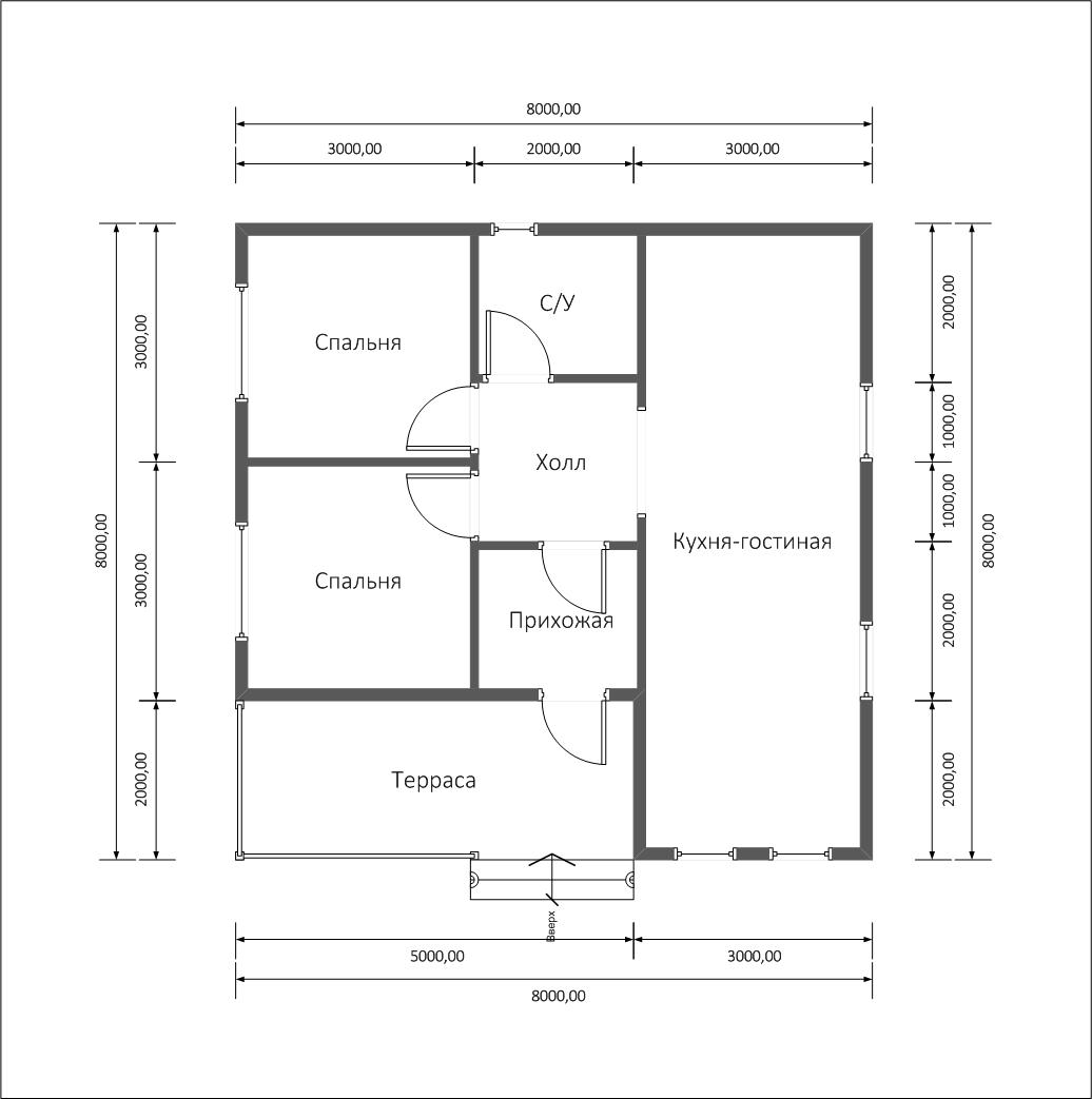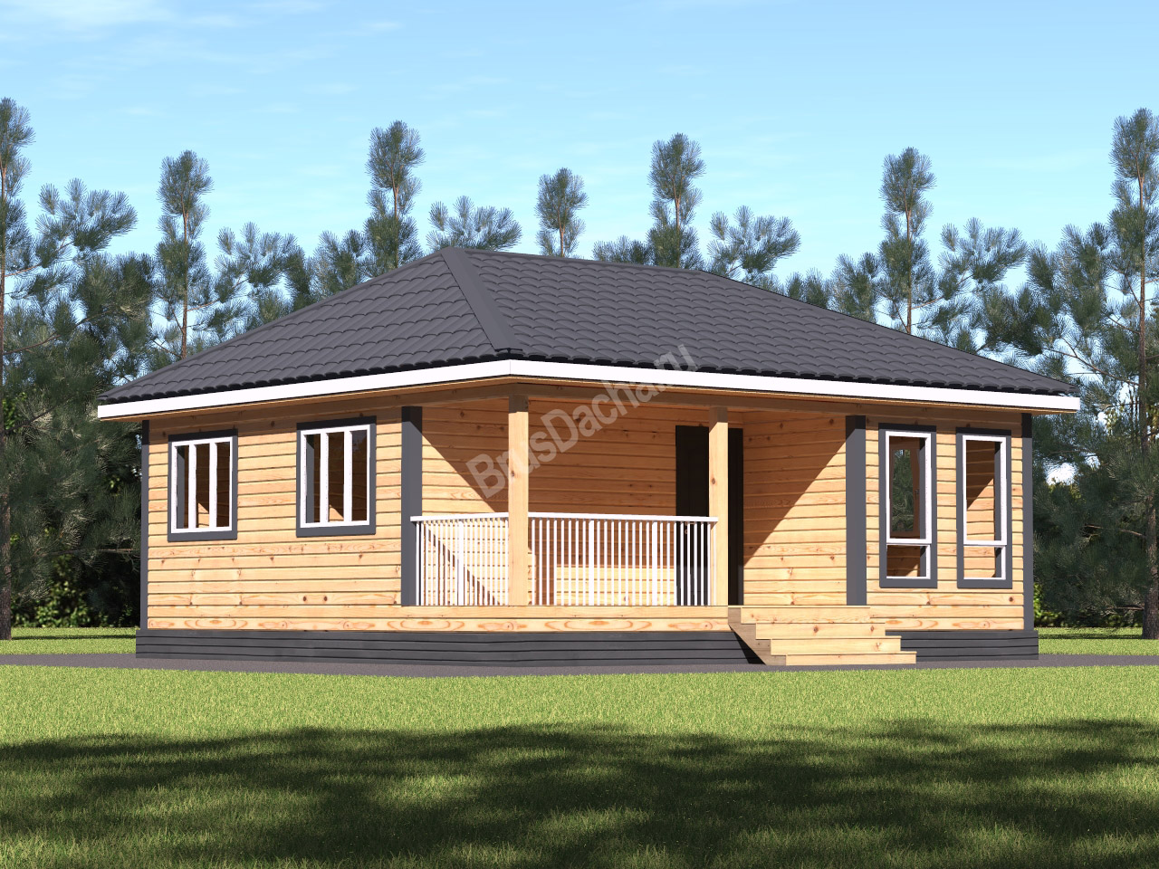Каркасный дом в полтора этажа 6х8 м с террасой