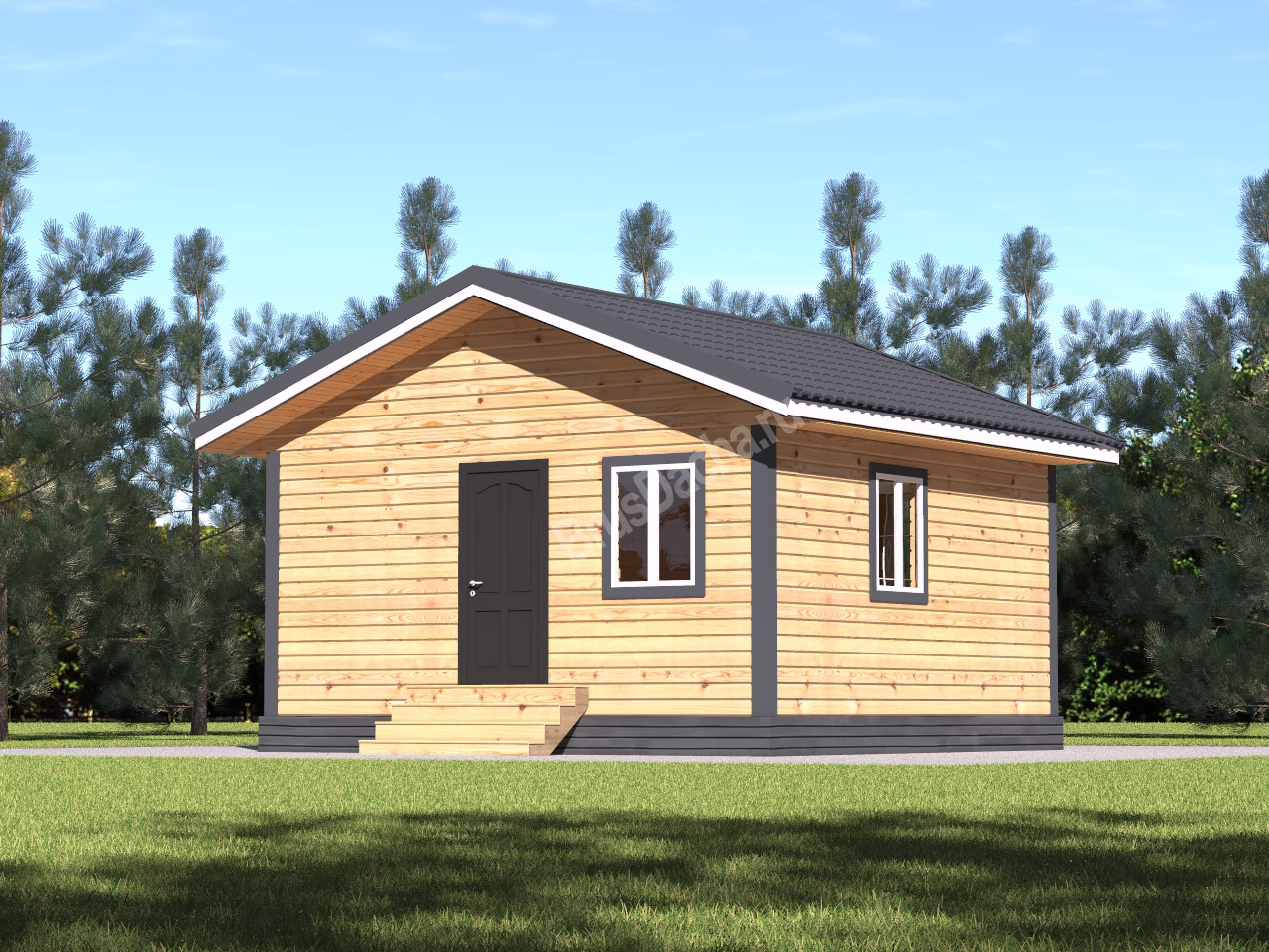 Обшиваются имитацией бруса сечением 14х120 мм, крепится на оцинкованные гвозди 70 мм. Ширина свеса: 450 — 500 мм.