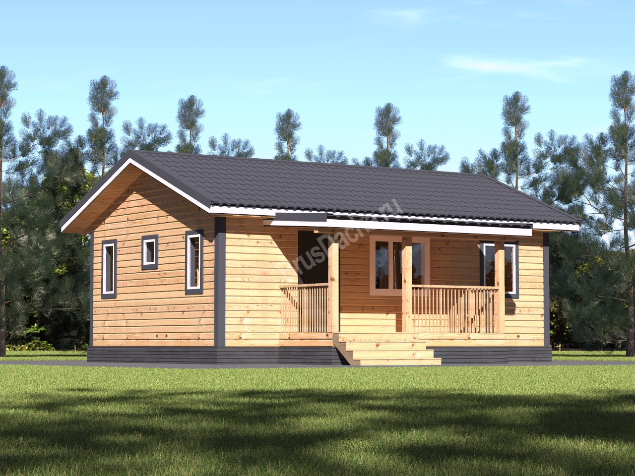 Дачный дом из бруса 8х8 м с большой террасой