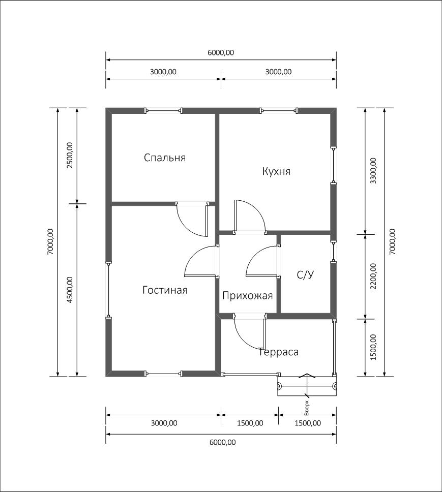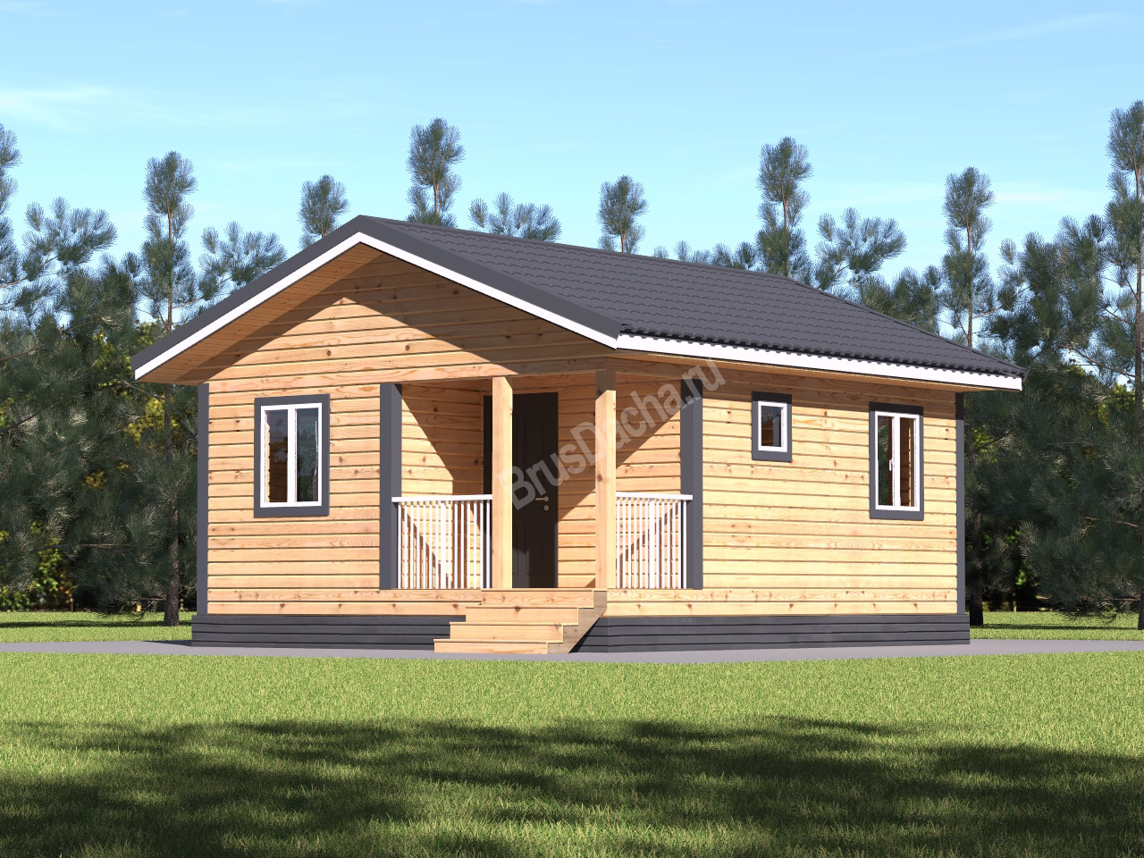 Каркасный дом в полтора этажа 6х8 м с террасой